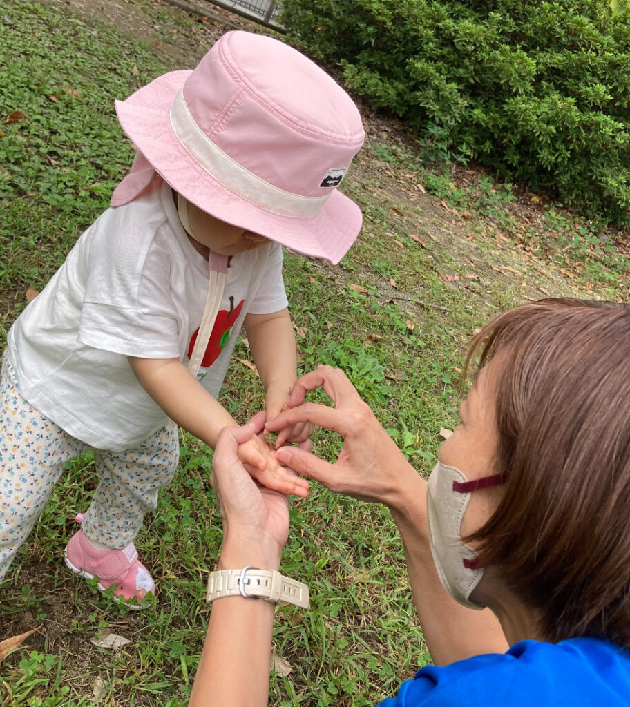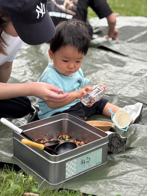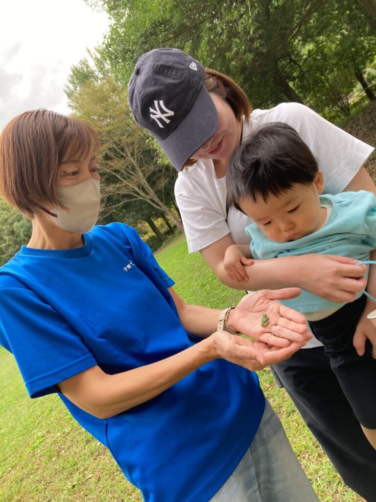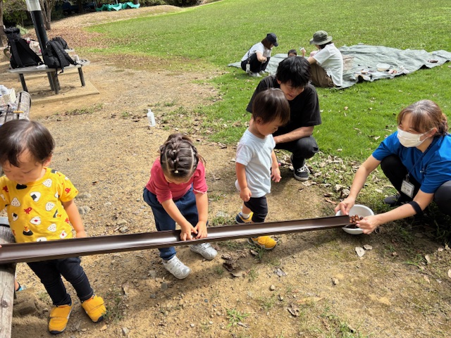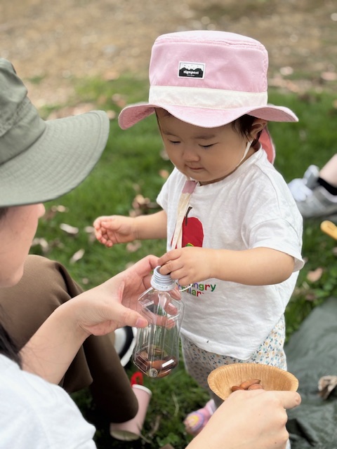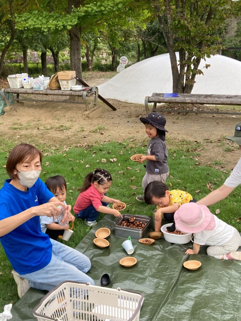 暑さにばかり気を取られていたけど、ちゃんと自然は秋に向かう準備をしていたんだね~とママたちと秋の実りに感心。みんなでたくさん集めた後は…