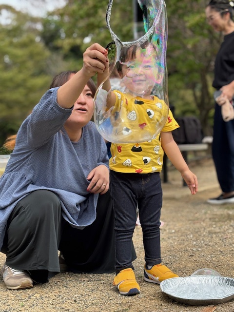 立派なおおきなシャボン玉作りができたのは、元そとあそびくらぶメンバーのママからの魔法のレシピのおかげ!!