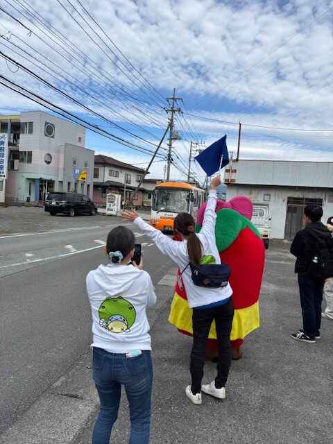 とまチュウご本人をお呼びしてとまチュウバスに乗り込むおともだちをお見送りをしてもらうことに