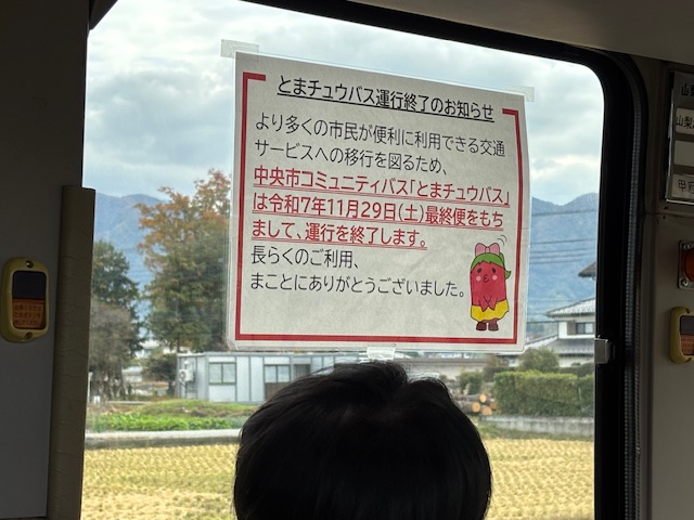 ですが、この11月をもって中央市コミュニティバス『とまチュウバス』が運行終了になるとのことで惜しまれつつ最後のとまチュウバス企画になってしまいました… さみしい…(T-T)
